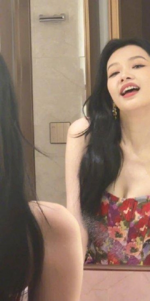 孙怡分享四宫格live图 穿抹胸裙对镜摆pose托腮甜笑