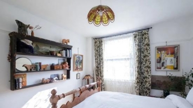 房子建于1936年,四周山林环绕。她用三年时间改造,室内以复古壁纸与简约家具装点,温馨的刚刚好。