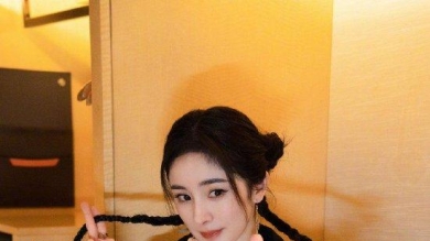 杨幂双丸子麻花辫造型俏皮可爱 白色涂鸦打底T恤童趣满满