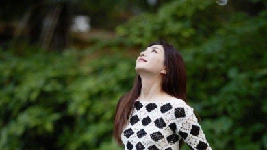 江疏影镂空针织衫清爽迎接九月 黑白相间衬温婉气质