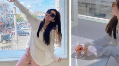 赵露思短裙日常照好甜 对镜嘟嘴比耶俏皮可爱