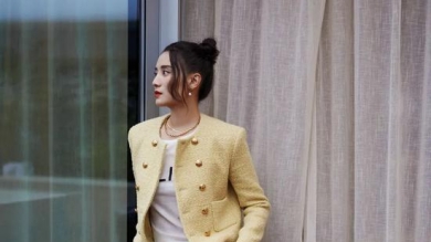 刘诗诗穿白衬衫发型利落气质好 花丛中拍照甜美又优雅