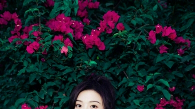 景甜夏日花园大片 穿玫瑰印花连衣裙氛围感满满