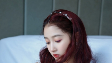 关晓彤蕾丝上衣搭短裙秀美腿 珍珠编发精致可爱